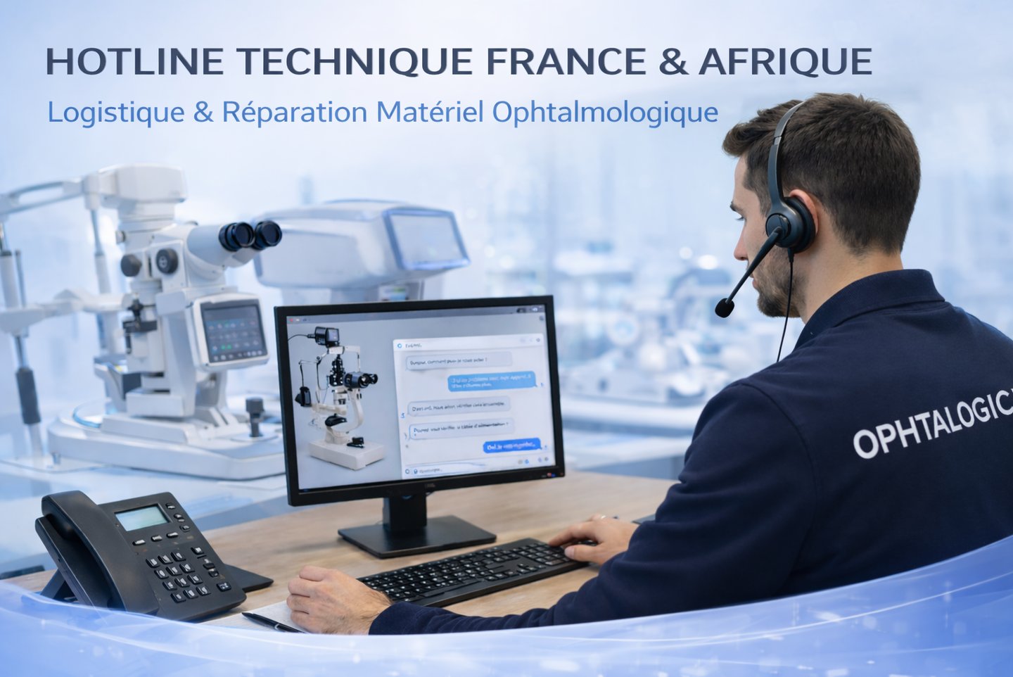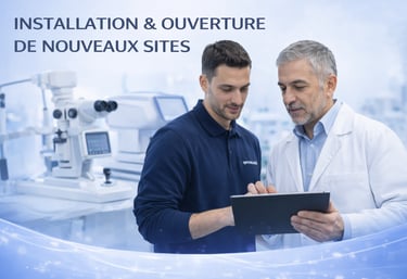 Installation complète de vos équipements ophtalmologiques avec configuration sur mesure, tests, calibrage et accompagnement de vos équipes.